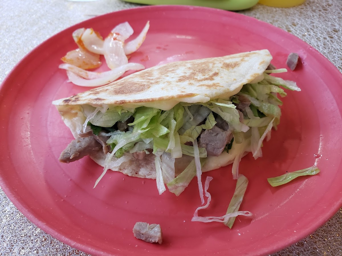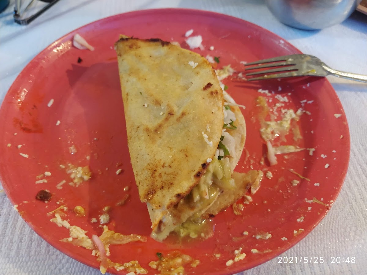 Food was fantastic, but didn't know the prices (not written on the board) so we could(n't) budget correctly. But gringas, quesadillas and tacos were amazing! Our 2 kids started with 1x pollo (chicken) quesadilla each but ended with 5x in total! The asada (beef) and adobada (pork) gringas were my favourites!